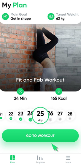 On the home screen, tap on the “Go to Workout” button to enter the workout session.