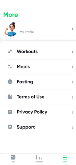 Start by opening the Fit4Me app on your device and tap the "More" button in the bottom right corner.